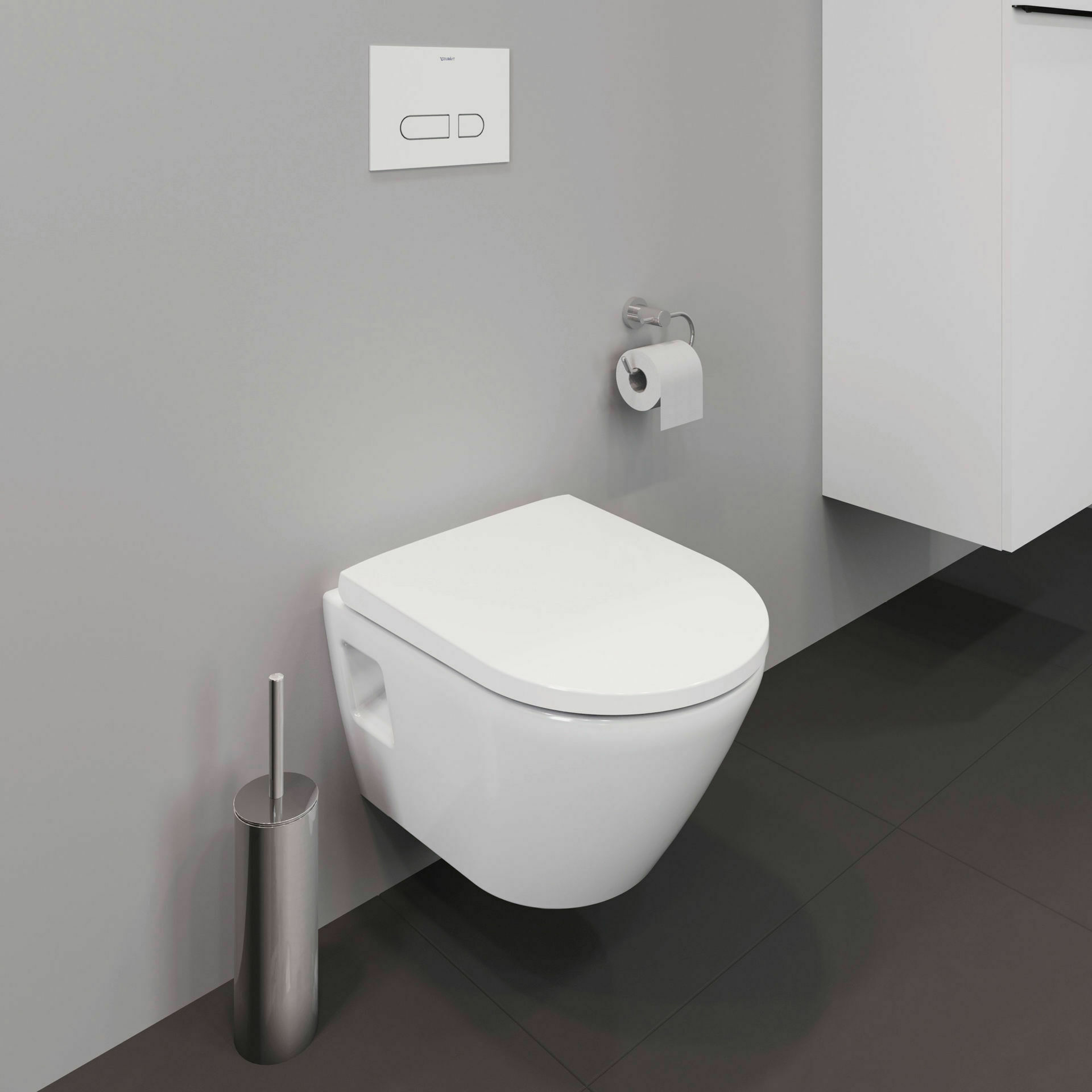 Compact version: shortened projection as an ideal solution for confined spaces , Duravit Rimless® open flushing rim with dynamic water flow: perfectly hygienic flush results, even with small amounts of water , Entirely glazed flushing rim: the smooth surface prevents dirt and residue from accumulating , Fully-glazed, super smooth ceramic prevents germ formation and deposits , Hygienic washout flush without excessive spraying , Large flush water volume: 4.5 litres , Made of high-quality, long-lasting sanitary ceramic: particularly rugged, scratch-resistant material with a high degree of hardness, easy-clean and hygienic surface , Particularly efficient, economical water consumption: Unified Water Label (UWL) class 1 , Wall-mounted installation , Washdown model: for minimal odours.