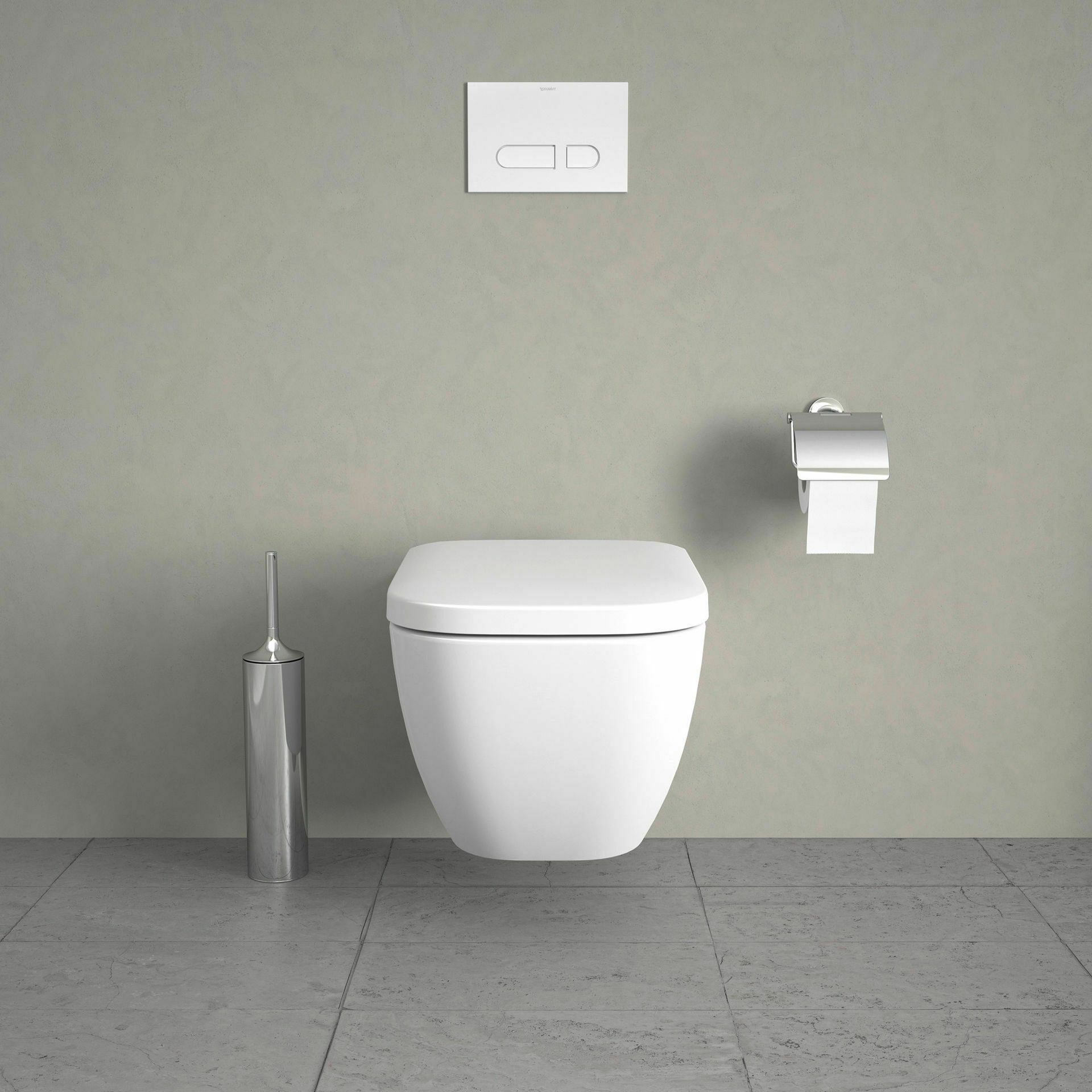 Antibacterial ceramic glaze: inhibits 99.9% of bacteria after 24 hours (HygieneGlaze) , Concealed mounting set: harmonious look, design is not disturbed by anything , Duravit Rimless® open flushing rim with dynamic water flow: perfectly hygienic flush results, even with small amounts of water , Fully-glazed, super smooth ceramic prevents germ formation and deposits , Hygienic washout flush without excessive spraying , Large flush water volume: 4.5 litres , Made of high-quality, long-lasting sanitary ceramic: particularly rugged, scratch-resistant material with a high degree of hardness, easy-clean and hygienic surface , Particularly efficient, economical water consumption: Unified Water Label (UWL) class 1 , Patented Durafix mounting system: concealed mounting set made of metal, particularly quick and easy to install - and completely invisible , Wall-mounted installation , Washdown model: for minimal odours.