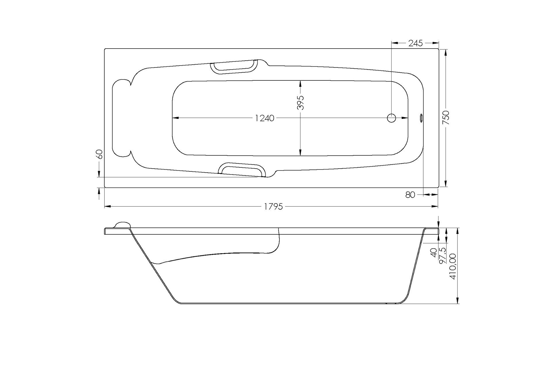 NEW YORK RECT E/W BATH 1790 x 750 (W/ HANDLES)
