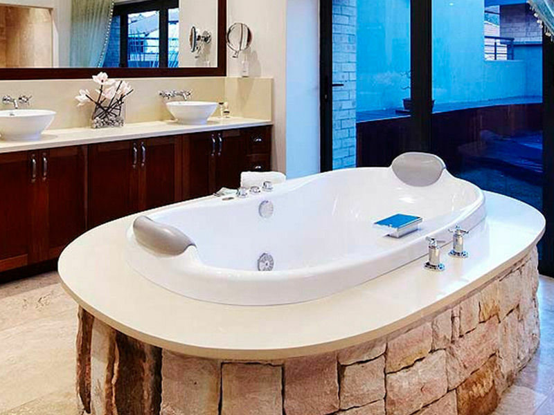 Twelve micro jets providing fingertip or “shiatsu” massage along with five large center air induction jets that provide a firm safe deep pressure massage. Operate the micro jets or the large jets separately or for a more vigorous massage use them together. Two separate pumps driving a total of 17 jets make for a truly unique bathing experience.