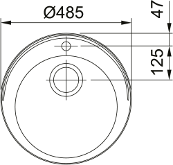 Rondo RDX610-48 Prep Bowl 485Ø mm, Inset, Stainless Steel. 90mm Waste, slotted overflow & tap landing. 25 Year Warranty.