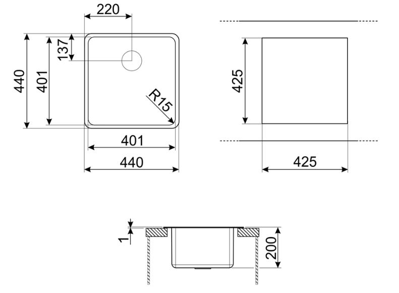 SMEG MIRA SGL BWL U-MOUNT SINK 440 x 440