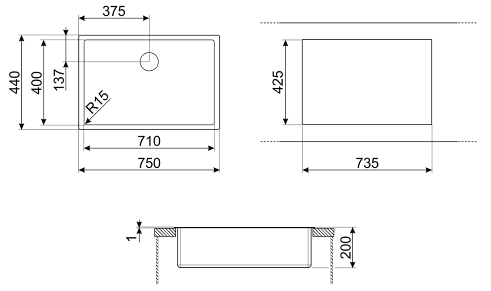 SMEG MIRA SGL BWL U-MOUNT SINK 710 x 400
