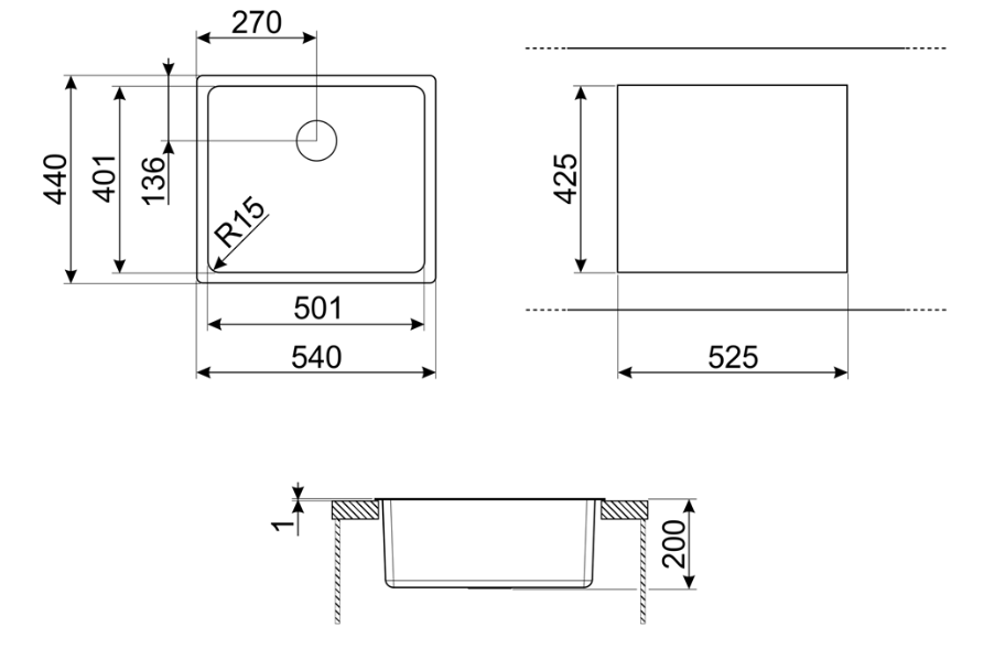 SMEG MIRA SNGL BWL U-MOUNT SINK 540 x 440