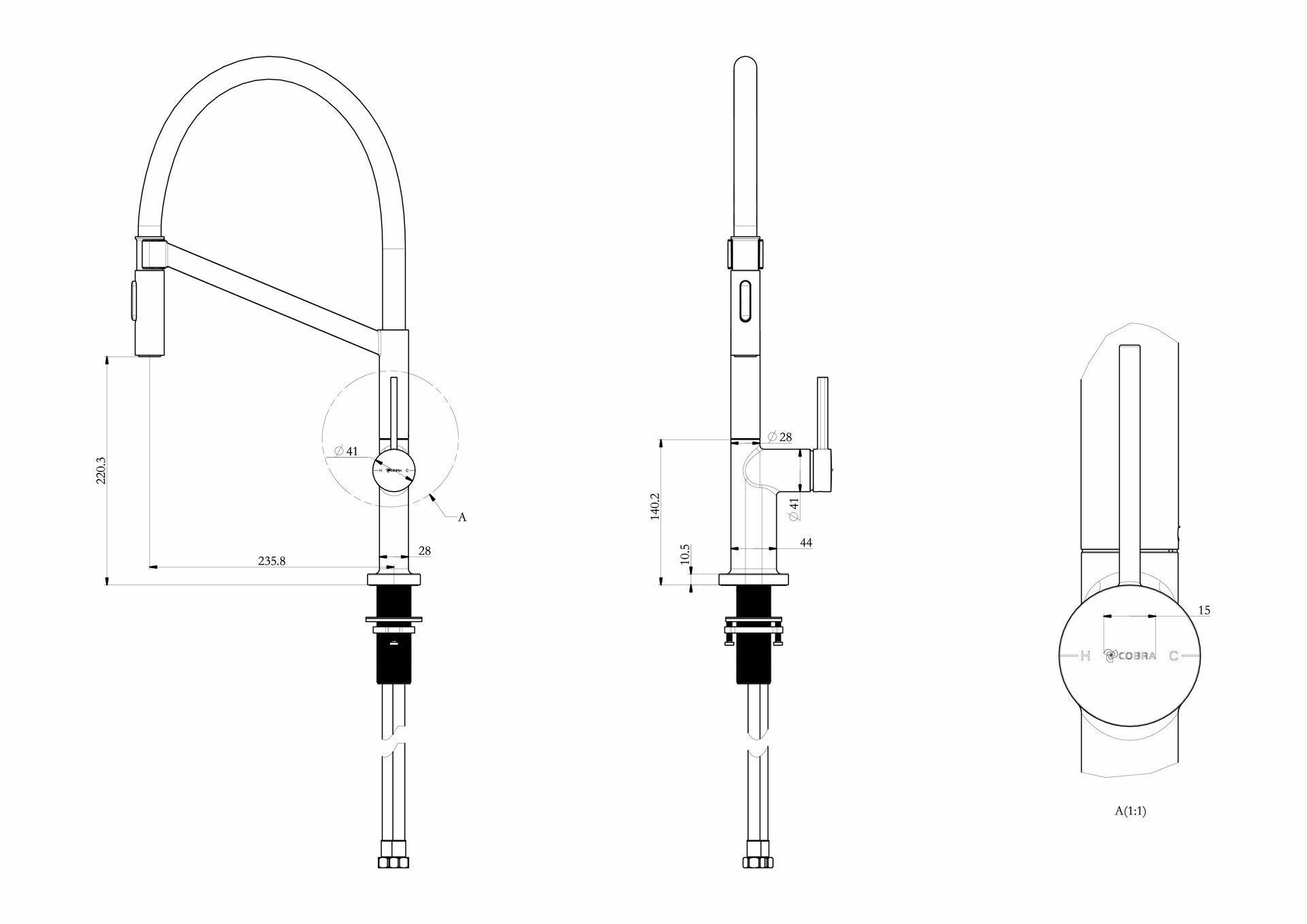 Cobra Refresh single lever sink mixer finished in chrome. Manufactured from SANS compliant dezincification resistant brass. Designed to suit kitchens with a modern, rounded aesthetic. Pillar type with single hole. With flexible pull-down spout. Dual spray. Neoperl aerator. 15mm flexi-connection ends. Cobra FeatherTouch 28mm ceramic disc cartridge. Access to Cobra TeamAssist technical service team. 20 year warranty provided.
