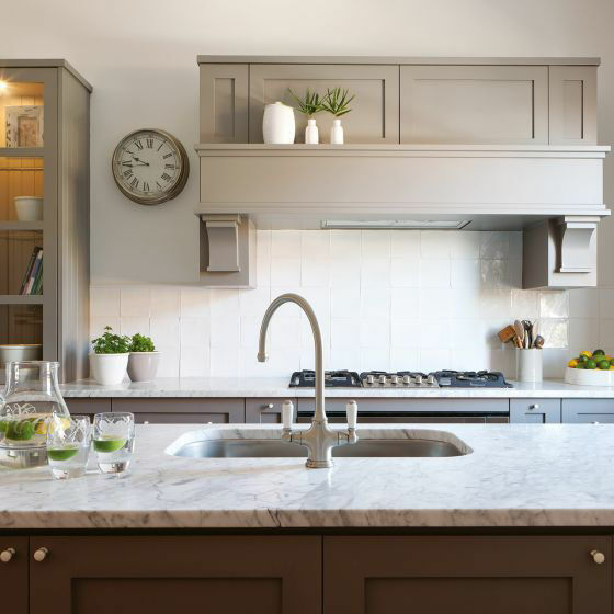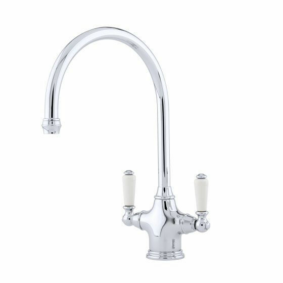 Featuring beautiful porcelain inserts on the lever handles, the elegant Phoenician sink mixer is a timeless addition to your kitchen design.